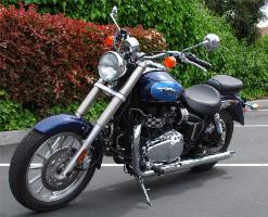 Stock #: 110632 VIN: SMT905RN39T382394 Mileage: 1375 Color: Two Tone Blue and Silver Engine: 865cc Transmission: 5 speed Body Style: Cruisers