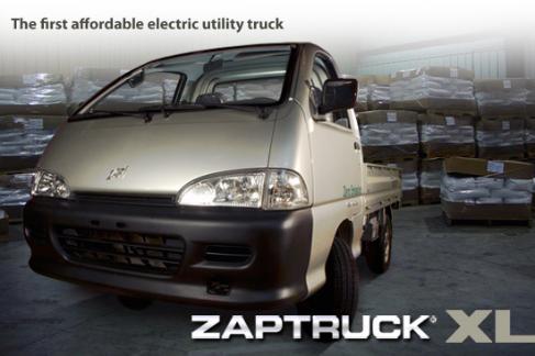 | This Truck use a 26 Kilowatt AC motor with regenerative breaking and coasting to reach ranges of over 150 miles at 25 Miles (NEV) per hour or 100 miles at 45 to 50 MPH off road. Roomy, durable, rugged yet whisper quiet. The new ZAPTRUCK XL is the affordable green solution of your fleet operations. A utilitarian workhorse providing a roomy cab for two and a convertible bed/platform for moving up to 1900 lbs. of cargo during off-road use. Ideal Off Road use for Corporate Campuses, Warehouses, Universities, Factories, Municipal Operations, Government Facilites, Golf Courses, Amusement Parks, Airports, and around the ranch or farm. Classified as an NEV (Neighborhood Electiric Vehicle) the ZAPTRUCK XL is speed-limited by its controller to travel at speeds up to 25 to 30 mph. In the off road mode it can acheive speeds of 45 to 50 mph in about 8 seconds depending on the bed load. Conservative driving styles and acceleration is required to achieve published ranges. Terain will also effect range. |